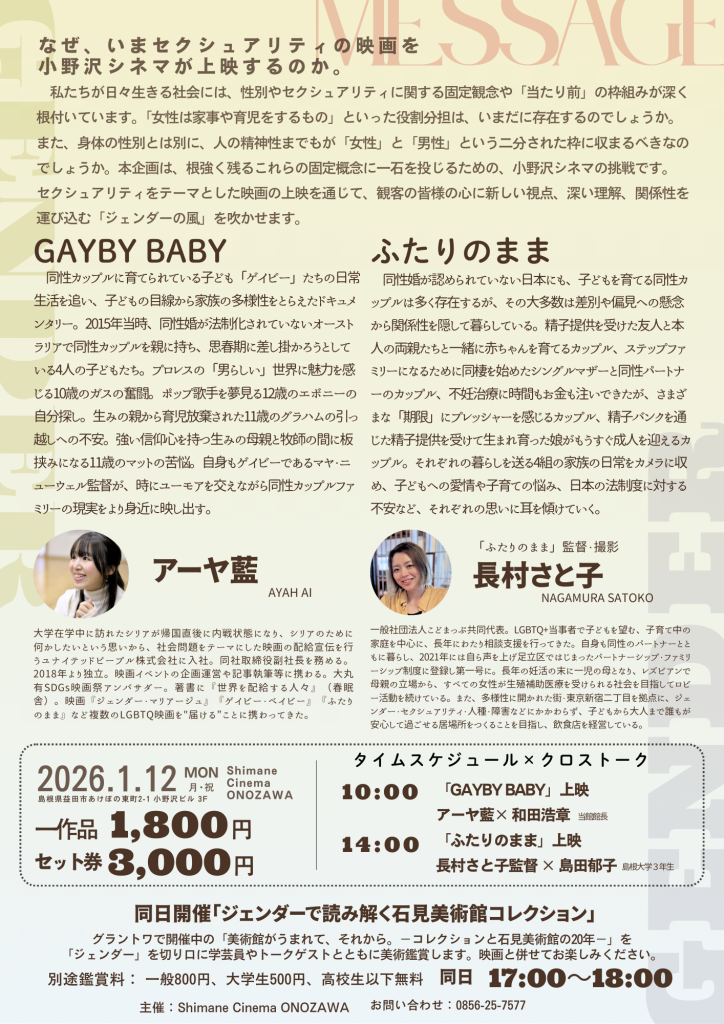 【ジェンダーの風を吹かせる 映画の未来を届ける映画館】(1/12月祝)開催!